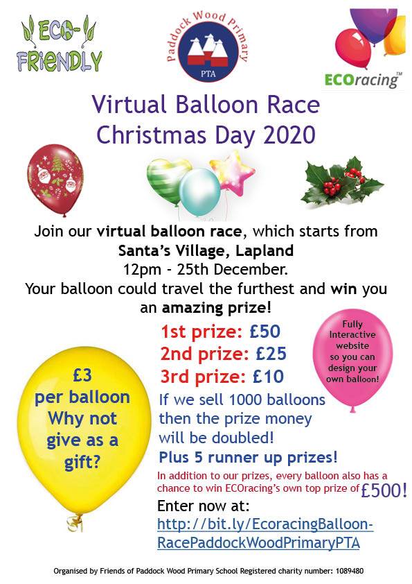 The purpose of the PTA is to organise fun events to raise funds to enhance and enrich our children's education, with November and December normally being our busiest and most exciting months. These unusual circumstances call for a different approach to fundraising, so we hope you will enjoy being involved in our virtual balloon race so that we can continue to raise funds. The funds raised will go towards the Staging Project, water bottles and Gingerbread treats for all Reception Starters, maintenance of all the playground equipment as well as those fun events your PTA organise and run for the children of Paddock Wood Primary; Discos, Fireworks Night and our Summer Fayre. Money raised by Paddock Wood Primary PTA has paid for: