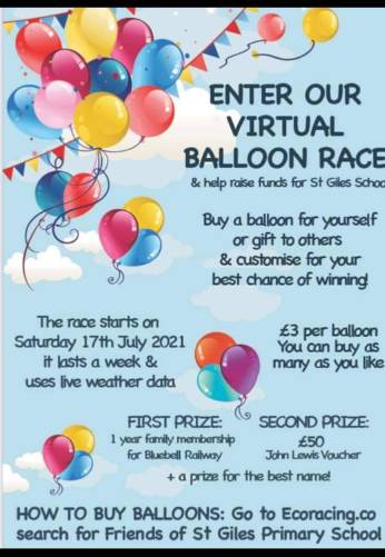 Buy or gift your balloon now – every purchase supports your friendly PTA - Friends of St Giles Primary School. So far during this unusual challenging year we have supported the school through funding music workshops, laptops for home learning, First News subscription, and of course some Easter chocolate! This is our last fundraising event this school year, let's finish the year with a Bang! (Pop?)