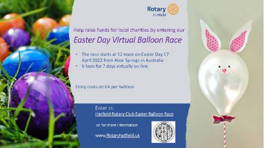 Join our Easter Day 2025 Balloon Race to support Hatfield Rotary charities see www.rotaryhatfield.uk
