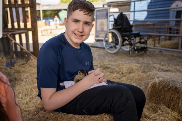 Oliver, now 12 years old, was born with myelomeningocele spina bifida and hydrocephalus, which required a ventriculoperitoneal (VP) shunt. A wheelchair user, Oliver has extreme weakness in both legs, has no spatial awareness and has in-toeing which often causes him to trip and fall. He is also double incontinent so his bladder and bowels have to be managed externally daily.