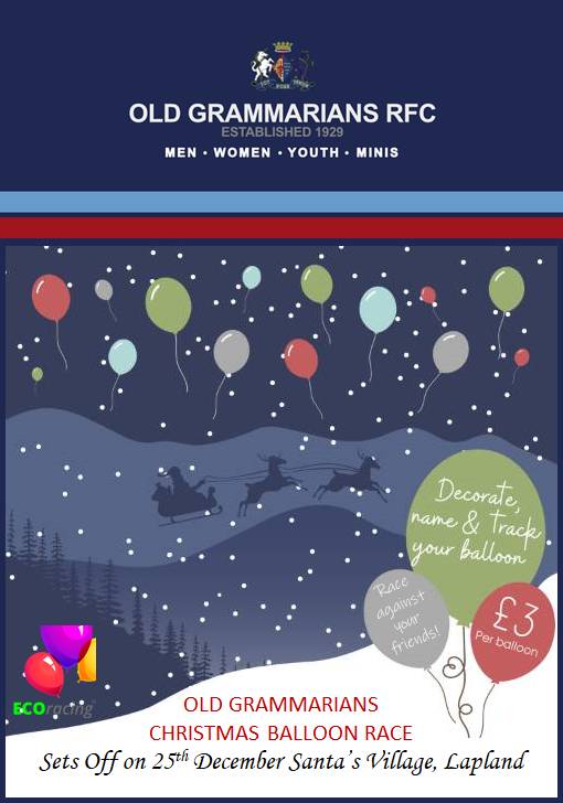 So, Old Grammarians will be one of the many organisations participating in a CHRISTMAS DAY BALLOON RACE!