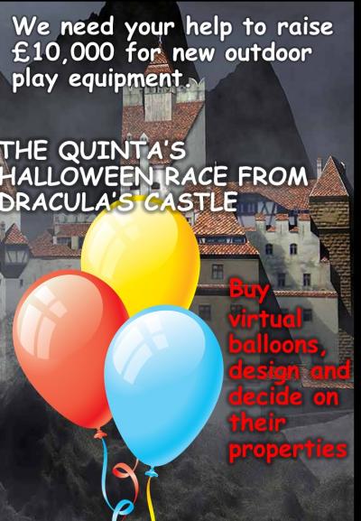 Our outdoor equipment is terribly old and our children deserve age appropriate equipment to engage with during free time. We would like to purchase some exercise equipment, climbing walls and frames, swings and towers. These will give the pupils more variety and opportunity to challenge themselves in different ways during their free time. The school has raised some money towards this already but getting equipment that will last and is of a high standard means we are looking to raise £10,000 to have the equipment built as soon as we can. If you are a business who would like to donate and have balloons with your name on , a family who are eager to see who can design the best balloon scientifically or just someone who wants to help us out and have some eco-friendly fun then contact the school or buy and design a some balloons and enter the race. We will be sharing the leader board every day with the class and parents along with finding the position of the balloons until the race finishes on 7th November. Thank you and good luck