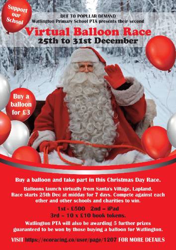 Ho Ho Ho!!! Welcome to Watlington Primary School’s Christmas Day Virtual Balloon Race – Balloons launch from Lapland on 25th December.