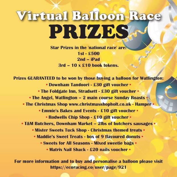 There is no limit to the amount of balloons which you buy; the more you purchase the greater your chances of winning one of the fantastic prizes, and every balloon you buy will make a difference to the profit which Watlington Primary School’s PTA makes from the race.